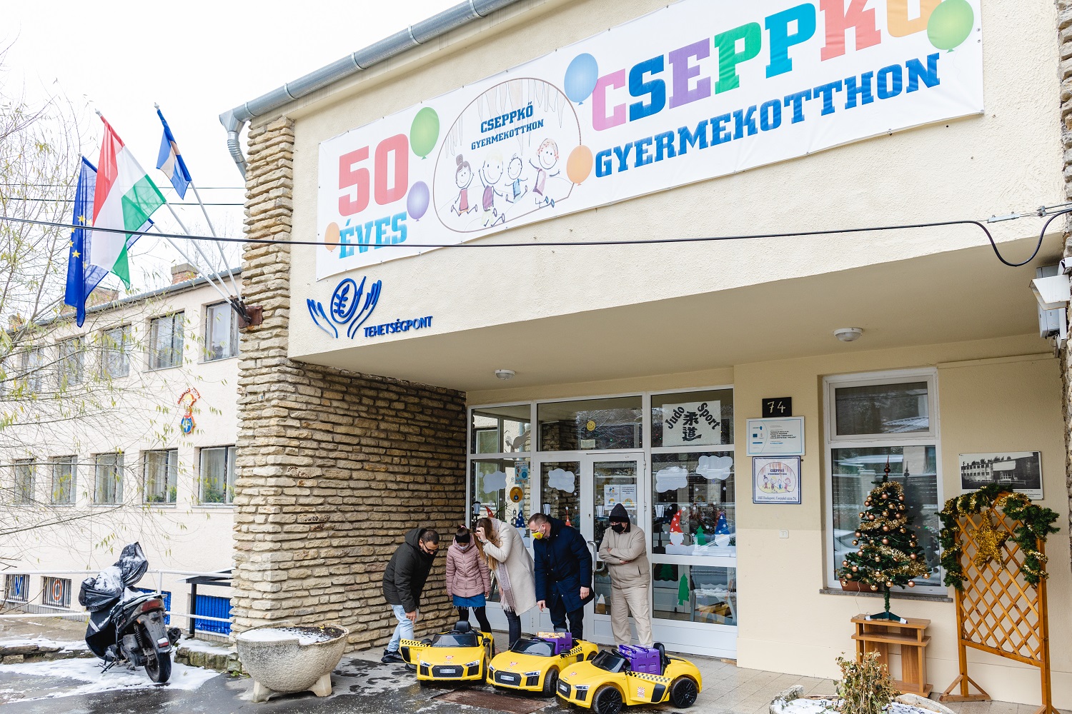 Ezúttal a karácsonyi ünnepek alkalmából a Főtaxi flottájában egyre nagyobb szerepet kapó környezetbarát, elektromos taxikhoz hasonló, teljesen elektromos gyermekjárművekkel lepte meg a budapesti Cseppkő Gyermekotthoni Központ lakóit.