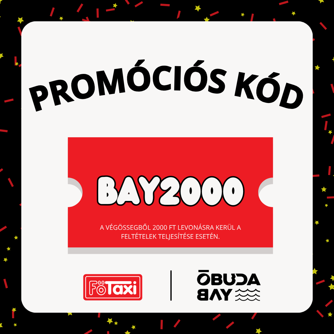Érkezz Főtaxival az Óbuda Bayre! Használd a BAY2000 promóciós kódot, és 2000 Ft kedvezményt kapsz az utad végösszegéből, ha az Óbuda Bay a célállomásod.